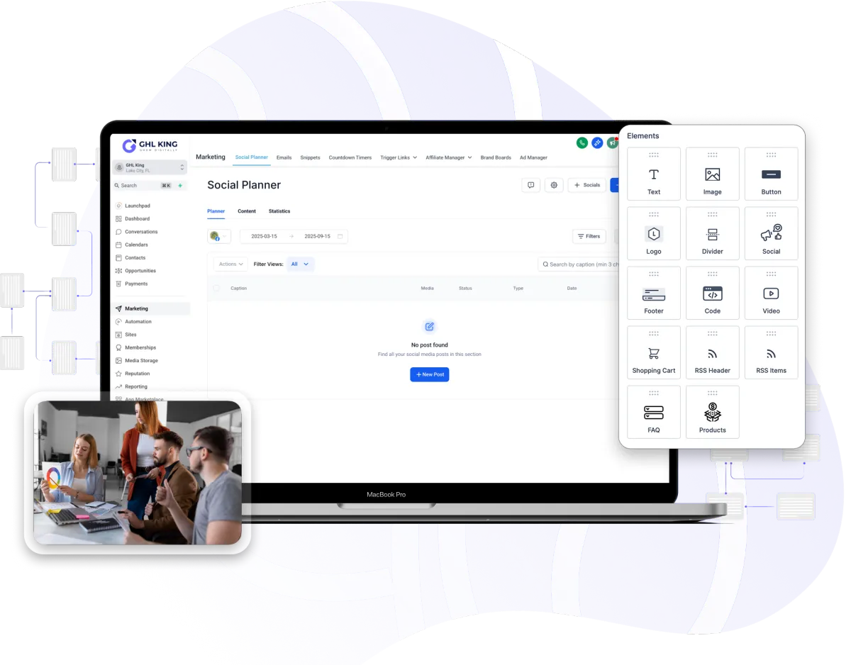 Staying consistent on social media is tough but with our social media calendar, it becomes effortless. Plan and schedule your posts weeks in advance, keep your content flowing without stress, and effortlessly reach more prospects with engaging content that works while you focus on your business.